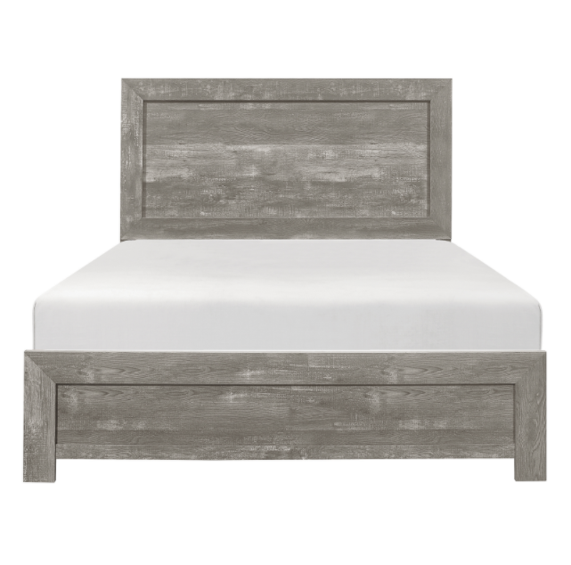 Modern lines and rustic styling are paired to create the look of the Corbin Collection. The 3D printed paper veneer’s texture is highlighted by a gray finish for a realistic wood look. Subtle framing defines the profile of the California King panel headboard and footboard, further lending to the unfettered design of the collection. The bed’s construction allows for convenient packaging within one box.
