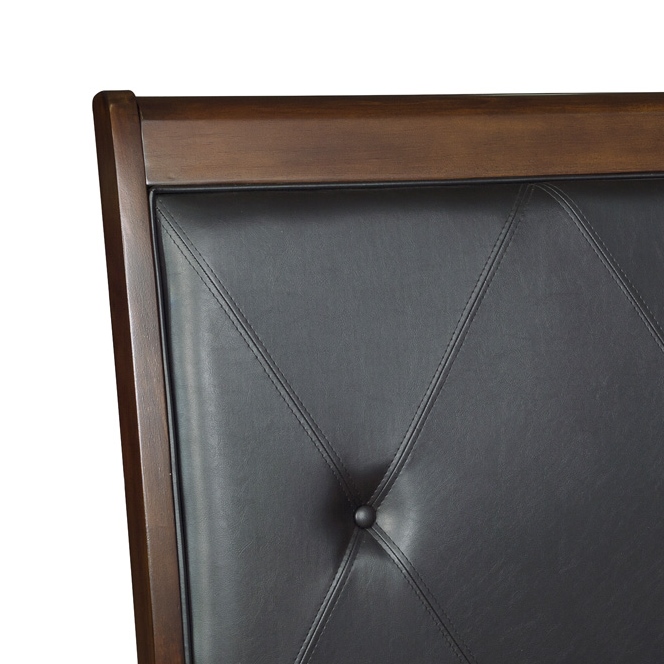 With transitional styling that is at home within a number of decorative environments, the Cotterill Collection will be a versatile addition to your bedroom. The cherry finish, over birch veneer, dramatically enhances the wood’s grain and is perfectly accented by the black faux leather insert with x-stitching and button-tufting that fronts the Eastern King headboard.