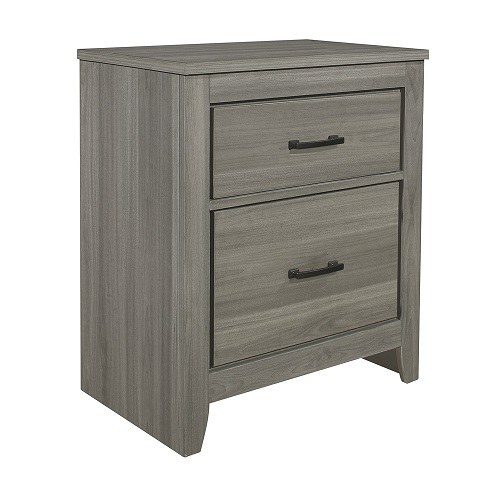 Heavily influenced by industrial design, the Holverson Collection will lend a unique look to your personal space. Gunmetal finished wood framing provides sturdy structure and profile to the nightstand. Faux rivets provide additional detail to the metal finished bracketing that is prominently on display. A rustic brown milk crate finish is utilized to highlight the acacia veneer with cup hardware providing complementing contrast to the wood’s natural look. The open base nightstand provides drawer storage as well as an open display shelf.