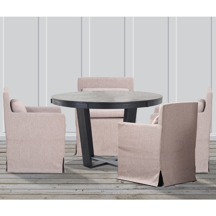 MATTE BLK WIRE BRUSH RND TBL W/ OAK VNR,3A