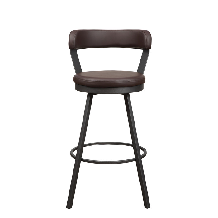 Perfectly styled for your casual dining space is the Appert Collection. This 29-inch pub height chair offering features a dark gray metal base that serves to support the brown faux leather round swivel seat. Allowing for perfect placement within your space, the Appert Collection is offered in a 24-inch counter height and 6 additional colors – black, blue, gray, dark gray red and white.
