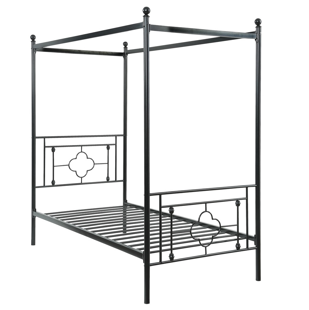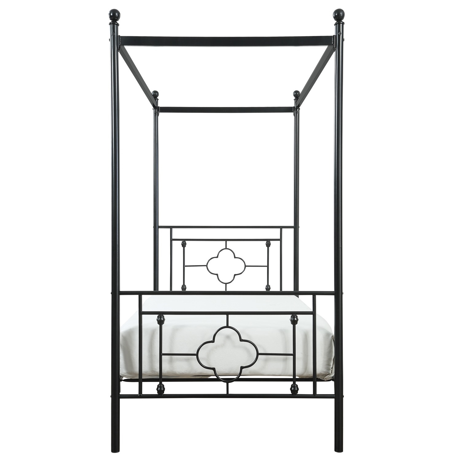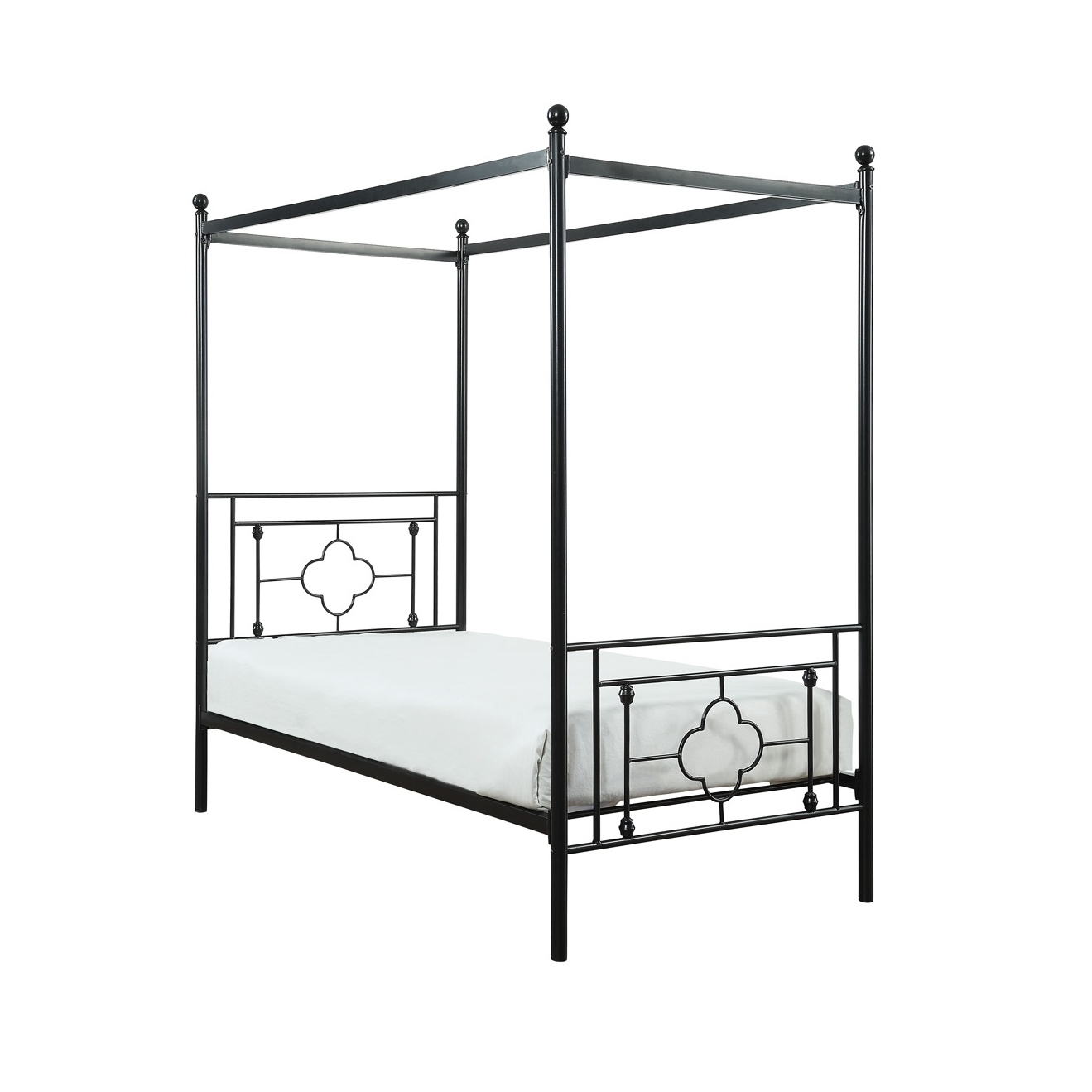 Inspired by vintage design, ball finials top the canopy frame while prominent decorative jointing and classic quatrefoil pattern lend to the modern traditional look of the Hosta Collection. The built-in platform support allows for the use of a mattress without a box spring. The Hosta collection is offered in twin and queen size bed options for versatile placement within your home.
